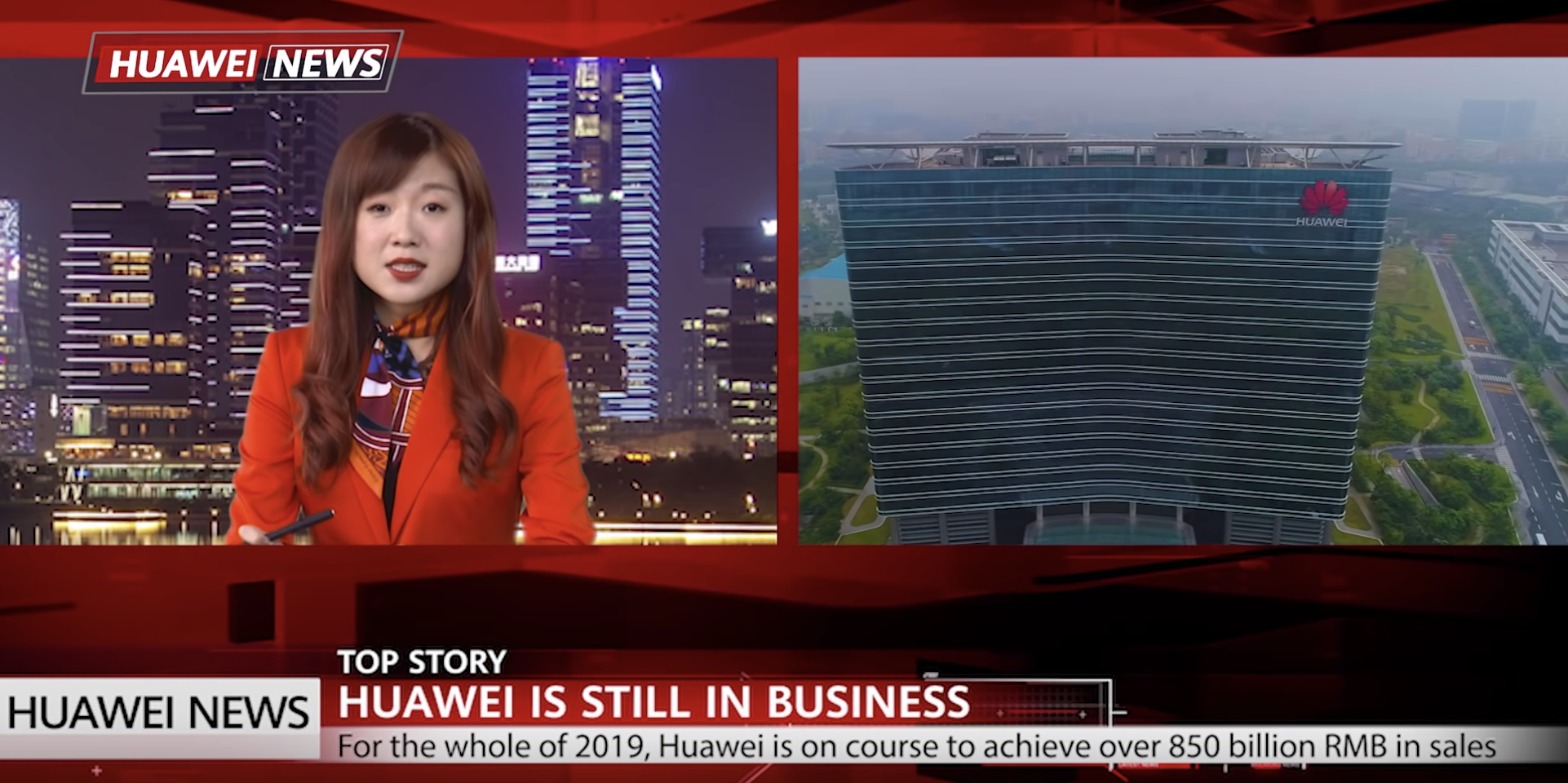 同日,华为YouTube频道还发布了首期4分钟的自制新闻节目,回顾公司2019年的成绩。视频风格非常类似美国的时政新闻,它披露了业绩预期,回顾了过去一年发布昇腾910芯片、鸿蒙OS等成就。但是任正非本人的形象并没有在视频中出现。