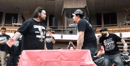 在被一耳光抽到頭暈目眩不得不扶著桌子才能勉強站立的情況下,也只有桌子才能攔住一個怒火攻心的壯漢撲向另一個壯漢。神誌模糊的時刻,桌子提醒著選手們現在是比賽而不是鬥毆。
