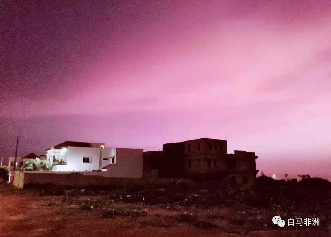 (拉各斯旱季的傍晚,薰衣草色的天空——不过和同事在塞内加尔看到的赤道极光相比,只能是小巫见大巫了)