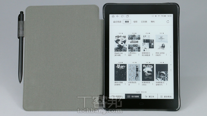 於是我們把台灣主要同樣有推出電子閱讀器平台的Kobo和Readmoo的Android APP安裝到Gaze Note上,結果表現並不差,和早期那種反應遲緩,動不動宕機的情況來說,我覺得體驗算是不錯了。雖然在啟動時,有時因為APP會連回網站去檢查,受限於網路速度會慢一些,但一旦開書之後,翻頁的速度上算是相當流暢。而且用手指去滑動或翻頁,會比使用原廠的觸控筆更順。