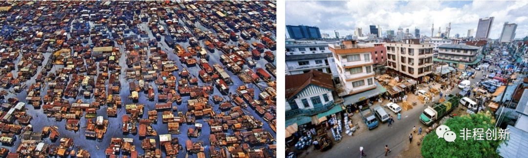 (水上贫民窟和拉各斯街头;图片来源:Pinterest,Brink News)