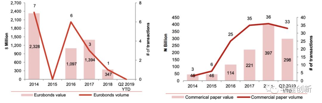 公司债券市场上,尽管受2014-2016年危机影响,本地公司对美元债务信心不强,通过发行国际债券(Eurobond)融资活动锐减,但本地公司短期通过商业票据(commercial paper)的模式融资热情有所恢复。