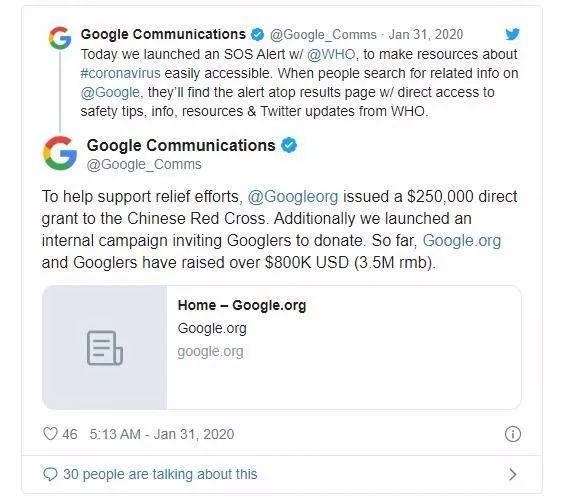 在Google搜索引擎上搜索冠状病毒的人会看到权威新闻和安全提示,世界卫生组织的信息也被推到相关查询的搜索结果的顶部。Google旗下的YouTube表示,其算法将优先考虑更可靠的信源。YouTube的发言人称,YouTube正在大力投资以提高网站上的权威性内容,同时减少错误信息的传播,例如确保搜索新闻的人首先看到权威性的结果。