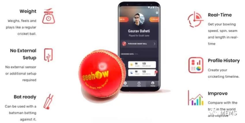 据麦姆斯咨询介绍,总部位于印度的SeeHow公司,就想将运动器材转变成数据检测传感器,来实现跟踪数据的目的。它的优势在于,传感器被嵌入板球和球棒手柄中,球员不需要改变原来运动习惯中的任何东西。这对于跟踪一个板球的运动,以及它落在球棒上的位置和方式,都起到了精准的记录作用,数据都记录在附带的Android应用程序中。